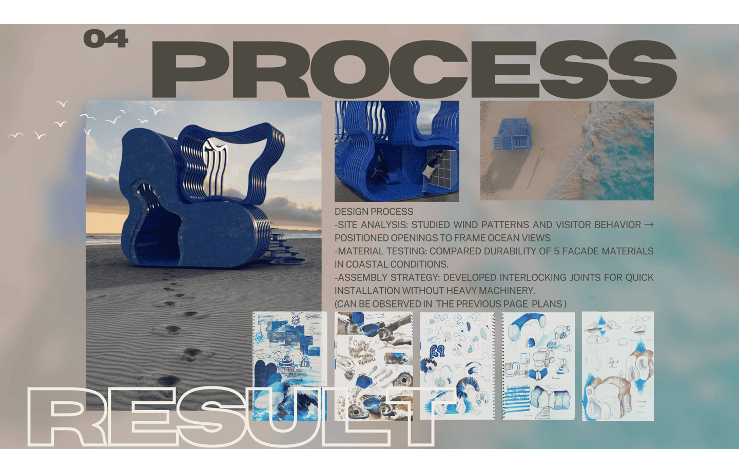 Iterative Modeling: Using physical prototypes and digital sketches, the team iterated on patterns and modular geometries, optimizing for both aesthetic impact and structural stability.